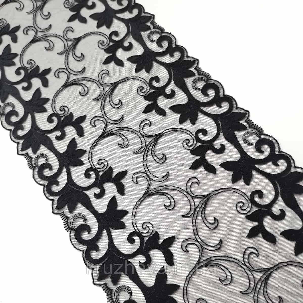 Ажурне мереживо вишивка на сітці: чорна нитка на чорній сітці, ширина 21 см