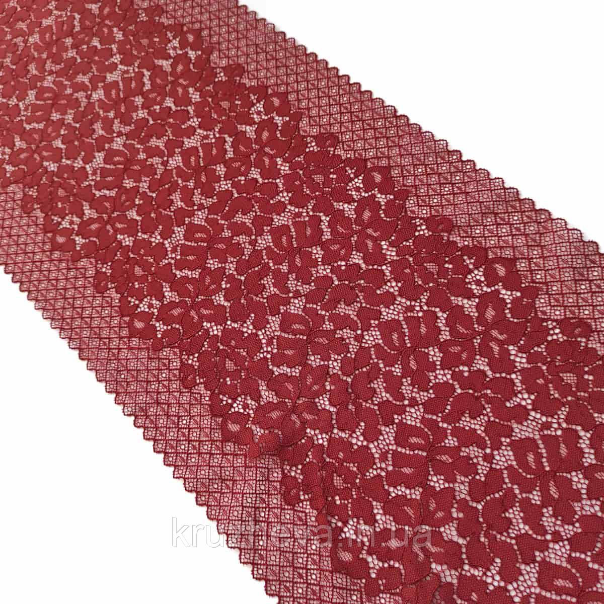 Стрейчеве (еластичне) мереживо червоно-коричневого кольору (теракотовий відтінок), ширина 23 см, з кордовою ниткою. М'яке на дотик. Використовують для пошиття спідньої білизни, декору одягу, у скрапбукінгу, у декорі інтер'єру, при виготовленні авторських прикрас. Ціна вказана за 1 метр. При замовленні 16 і більше метрів діє знижка 15%. Більше мережив у нашому магазині: kruzheva-cs3071511.prom.ua або в Інстаграм: www.instagram.com/kruzheva.ua/